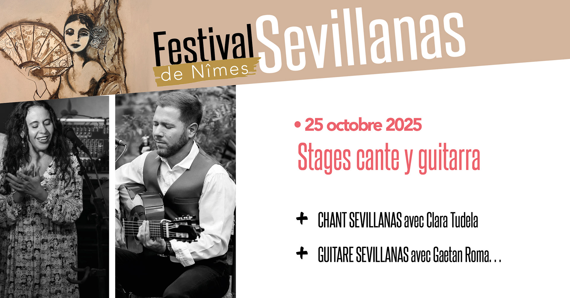 Sevillanas Flamencas (avancés) : 14h00 - 15h30. Tarif : 30€